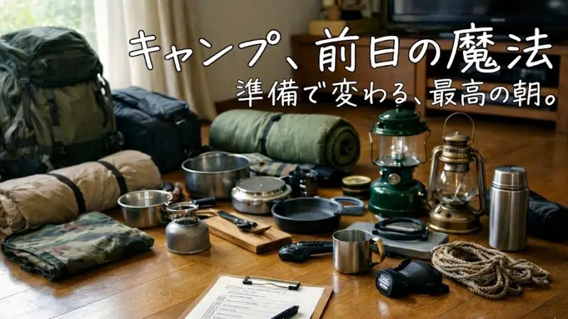 出発前の準備スケジュール キャンプをスムーズに楽しむためには、事前の準備がとても大切です。ここでは、出発前の1ヵ月前から前日までの流れをわかりやすくご紹介します。 1ヵ月~1週間前|キャンプ場の予約を済ませよう キャンプ場は人気の季節だとすぐに予約が埋まってしまうことも。できれば1ヵ月前までに予約しておくのが安心です。場所選びでは、初心者向け設備(電源付きサイト、レンタル品あり、シャワー完備など)があるかをチェックすると失敗しにくくなります。 1週間前~3日前|天気と現地情報をチェック 天気予報のチェック ...