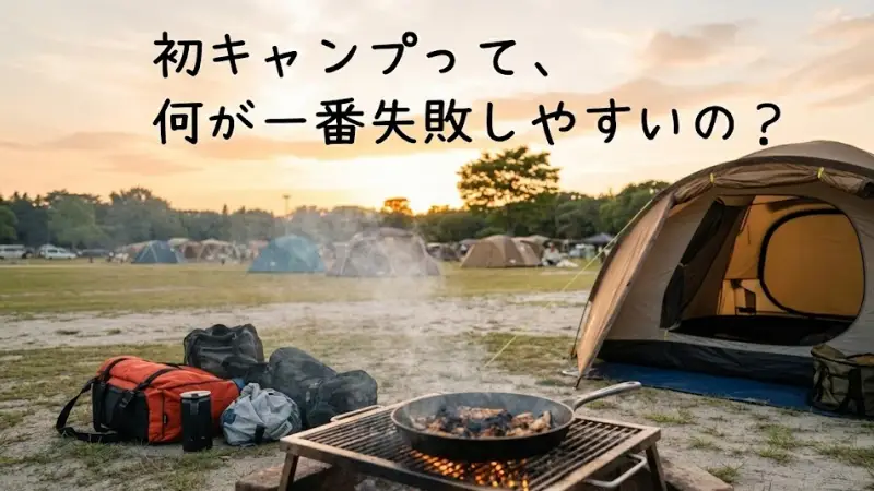 初キャンプで「失敗したかも…」と感じやすい瞬間とは? 初めてのキャンプでは、「楽しい!」と感じる瞬間と同じくらい、「これで合ってるのかな…?」と不安になる場面も多くあります。これは決して珍しいことではなく、多くのキャンプ初心者が経験しやすいことです。 特に失敗したかも…と感じやすいのは、次のようなタイミングです。 キャンプ場に到着した直後 受付を済ませてサイトに入ったものの、「どこにテントを張ればいい?」「車はどこに停める?」と戸惑ってしまう方は少なくありません。周りのキャンパーが手際よく設営しているよう ...