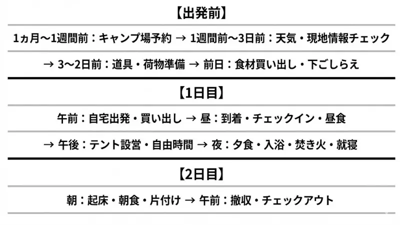 初心者でも安心!1泊2日キャンプの過ごし方とスケジュール完全ガイド