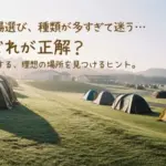 キャンプ場のテントサイトには、主に「フリーサイト」と「区画サイト」があり、それぞれ特徴が異なります。 自分のキャンプスタイルに合わせて選ぶことが、快適に過ごすためのポイントのひとつです。